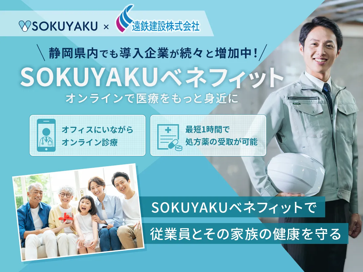 静岡県の遠鉄建設株式会社が、福利厚生の一環として新たに「SOKUYAKUベネフィット」を導入しました。このサービスは、従業員に対してオンライン診療や処方薬の宅配を提供するもので、仕事と健康の両立を支援する新たな取り組みです。
