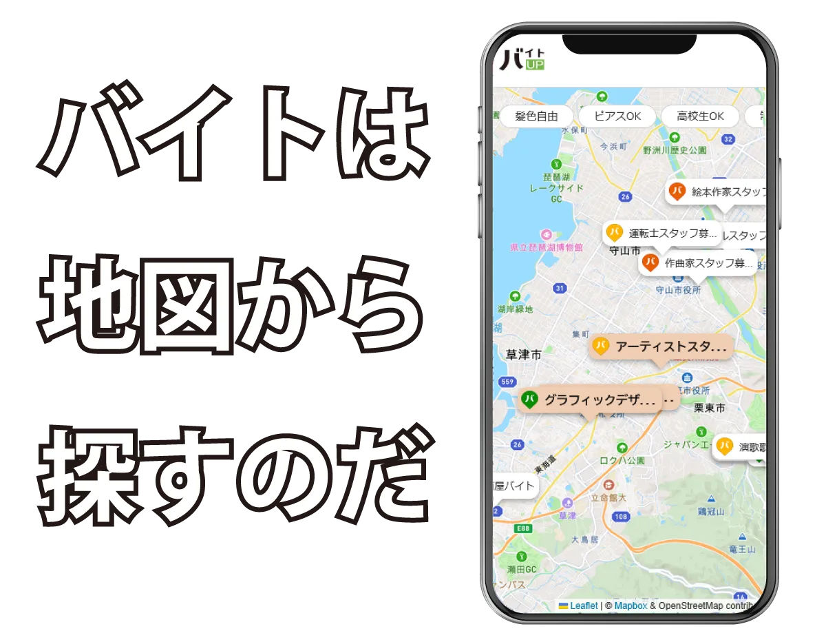 『バイトUP-ばいたっぷ-』の魅力は、何と言ってもその直感的なユーザーインターフェースです。求職者は地図から求人情報をピンポイントで見ることで、まるで街を歩いているかのように仕事を探すことができます。