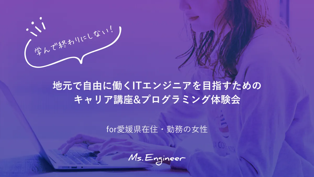 本イベントは、愛媛でITエンジニアを志望する女性が集まり、次のステップを踏むための良い機会を提供します。参加者は、ITエンジニアの仕事の魅力を知り、卒業生の具体的な経験談を聞くことができます。そして、実際にプログラミングを体験することで、スキルアップの道を感じてもらうことを目的としています。