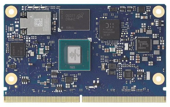 SoMは、プロセッサやメモリ、周辺機器インターフェースなどを1つのモジュール内に統合した基板です。これによって、IoT機器の製造を行う企業は、回路基板を基にした設計の負担が軽減されます。また、高性能なプロセッサと各種インターフェースが組み込まれているため、柔軟なカスタマイズが可能となります。