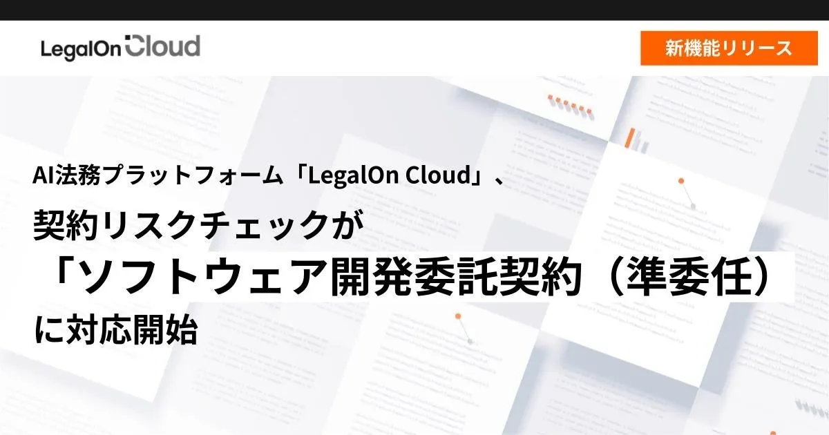 株式会社LegalOn Technologiesが提供するAI法務プラットフォーム「LegalOn Cloud」は、契約リスクチェック機能の強化を発表しました。新たに対応したのは「ソフトウェア開発委託契約(準委任)」です。この機能により、ソフトウェア開発契約に関わるリスクをよりスムーズに把握できるようになり、企業の法務部門は不安を抱えることなく業務を促進できるでしょう。