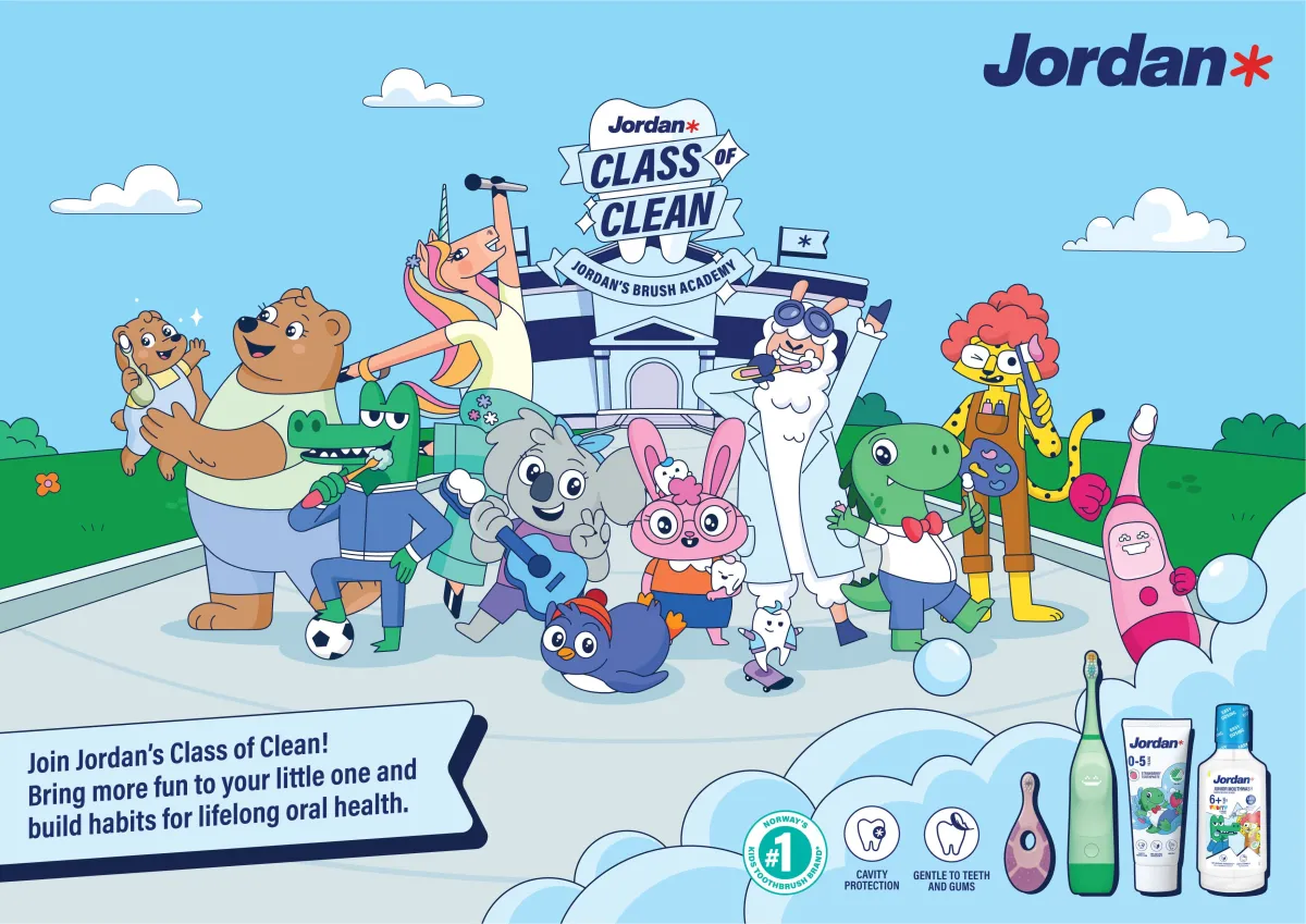 「ジョーダン」は1837年にノルウェー・オスロで誕生しました。1927年には歯ブラシの生産を開始し、現在では50カ国以上で展開しています。北欧の機能性と美しいデザインが光る製品づくりを続けており、子ども向けの製品もその一部です。健康的な口腔環境を維持しながら、家庭で楽しいオーラルケアの習慣を育む製品です。