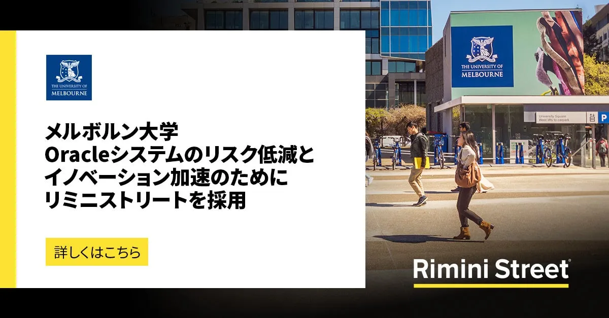 オーストラリアにあるメルボルン大学は、5万人以上の学生と1万人の職員を抱える国内有数の高等教育機関です。この大学が最近公式に発表したのは、Oracleシステムに対するリミニストリートのサポートを導入したことです。この一手により、デジタルイノベーションへの投資を強化すると同時に、卓越した学生体験を提供するための取り組みが進められています。