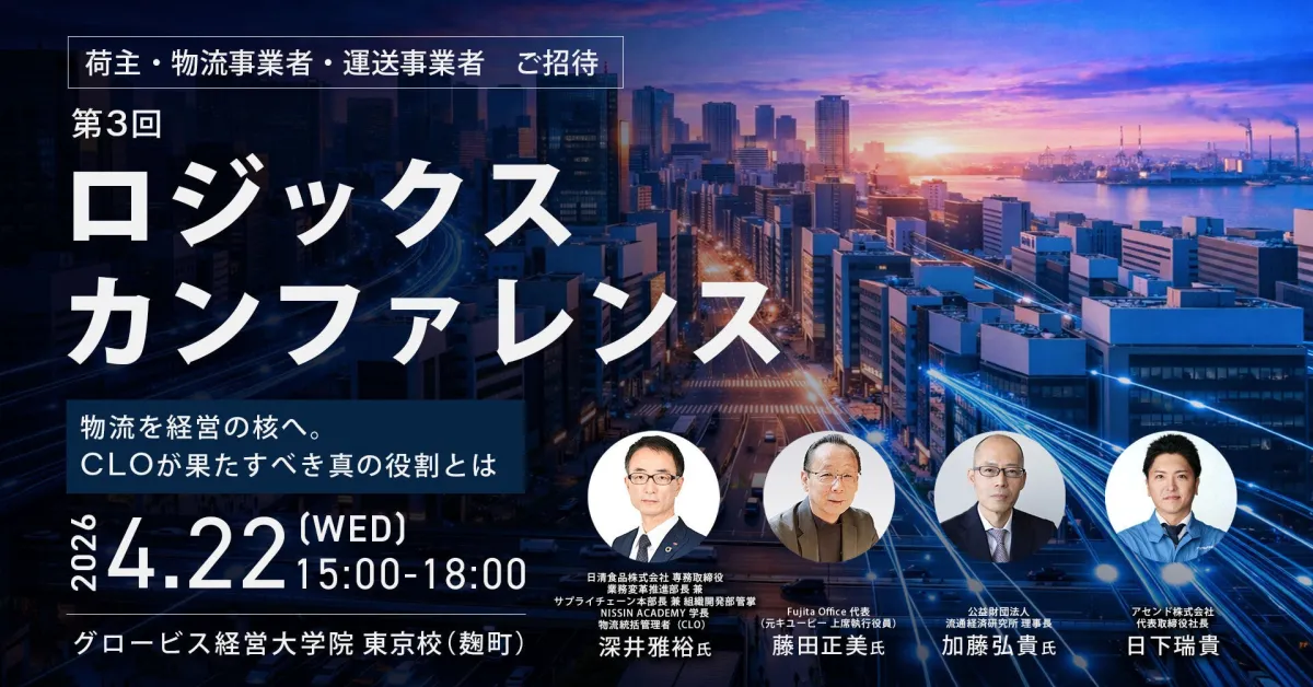 アセンド株式会社は、物流デジタルトランスフォーメーション(DX)を推進する企業で、このたび「ロジックス カンファレンス ~物流を経営の核へ。CLOが果たすべき真の役割とは~」を2026年4月22日(水)に開催することを発表しました。このイベントは、物流業界の重要なテーマである物流統括管理者(CLO)について、業界の専門家や現役のCLO達を招いて議論を深める場となります。