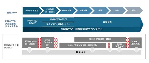 FRONTEOの共創型創薬エコシステムは、医薬品産業における新たな展開を促進するものです。従来の枠にとらわれない水平分業型のアプローチを採用し、異なる専門知識の融合を通じて次世代医薬品の創出に挑戦しています。今後も多様な企業やアカデミアとの連携を実現することで、医薬品開発における課題に積極的に取り組み、持続可能な成長に寄与していくことが期待されています。