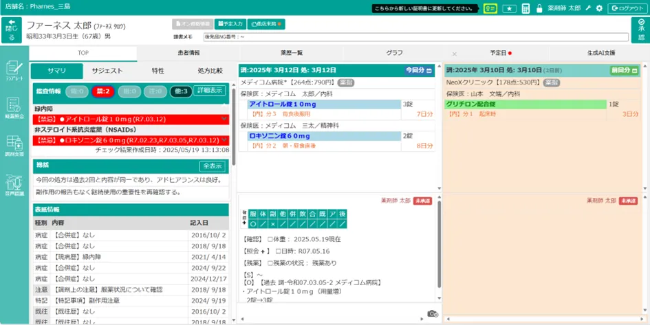 この「生成AIによる服薬指導提案機能」では、患者の個別の状況に応じて服薬指導の内容や注意点を自動で提案するため、薬剤師はより迅速かつ効果的に支援を行うことが可能となります。