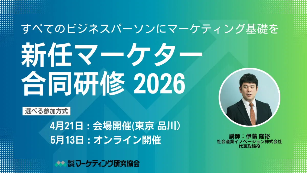 2026年5月13日、株式会社マーケティング研究協会が主催するオンラインセミナーが開催されます。このセミナーは、マーケティング部門に新しく配属された方や、営業、企画、広報職からマーケティングに転向する方を対象にした1日集中型プログラムです。
