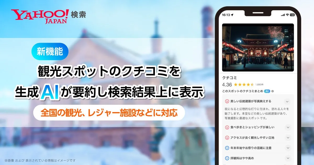 Yahoo!検索が観光スポットのクチコミを生成AIで要約