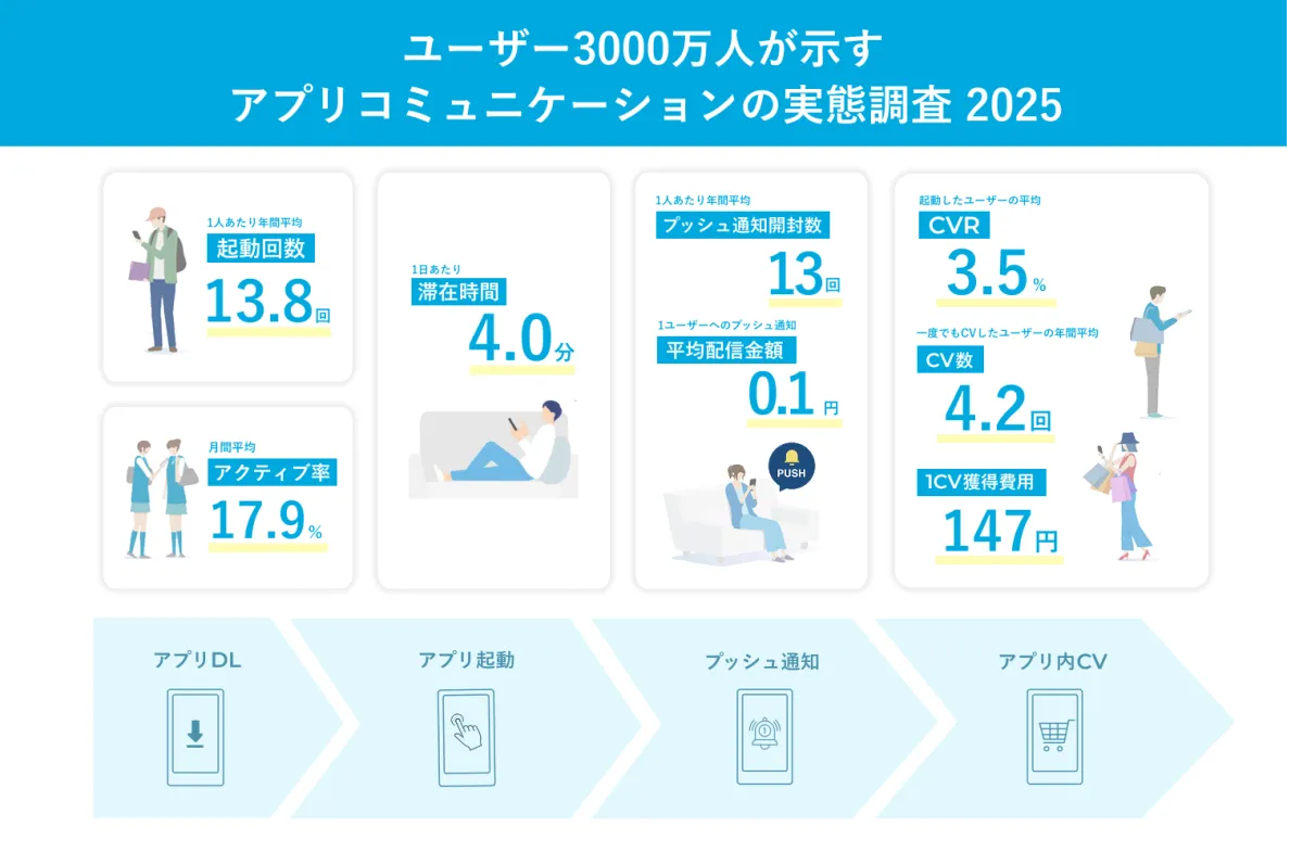 | 年間平均プッシュ通知開封数 | 3.5回 | 4.3回 | 6.5回 |