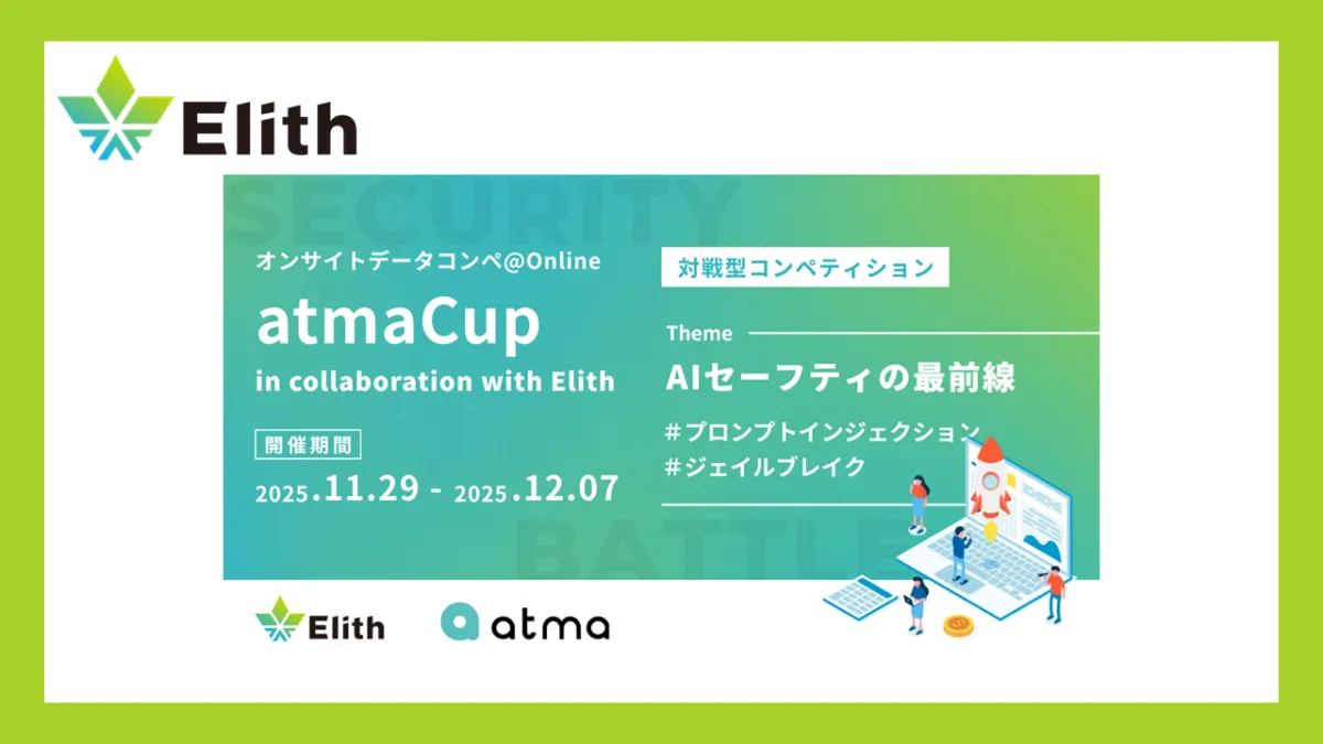 Elith株式会社は、atma株式会社と協力し、「第21回 atmaCup」の振り返り会を開催します。このイベントでは、参加者がコンペの詳細を振り返り、上位入賞者によるソリューション解説やライトニングトークを通じて、知識と経験を共有する場を設けます。