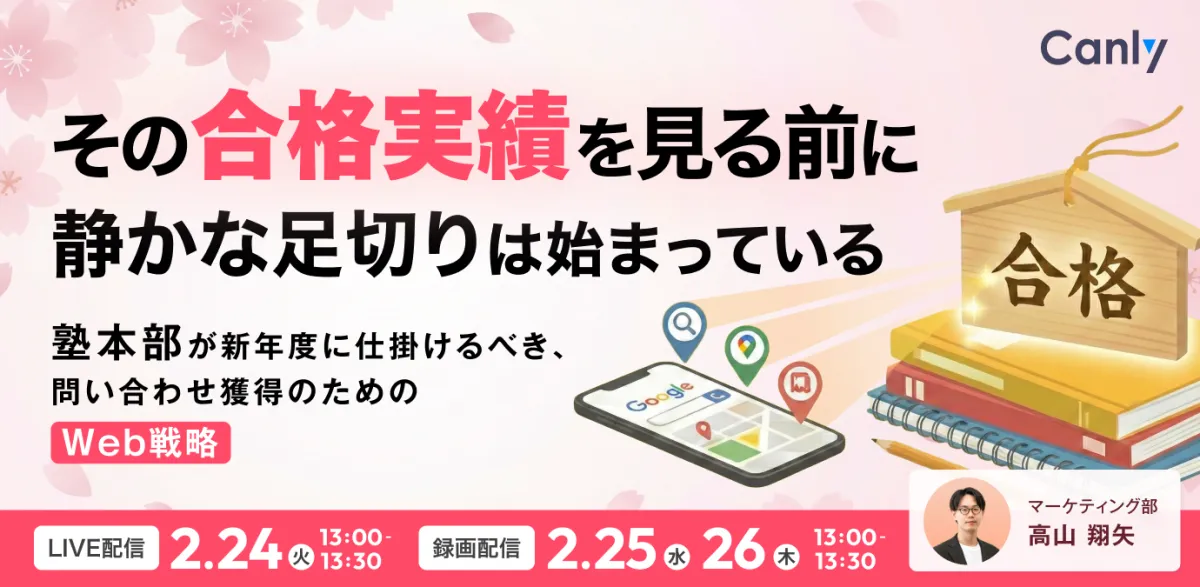 新年度に向けた重要な施策として、学習塾業界に特化したWeb戦略セミナーがオンラインで開催されます。このイベントは、株式会社カンリーが主催し、2026年2月24日から26日までの3日間にわたって実施される予定です。セミナーのテーマは「その『合格実績』をみる前に、静かな足切りは始まっている!」となっており、特にこれからの受験生獲得に向けた戦略が明らかになります。