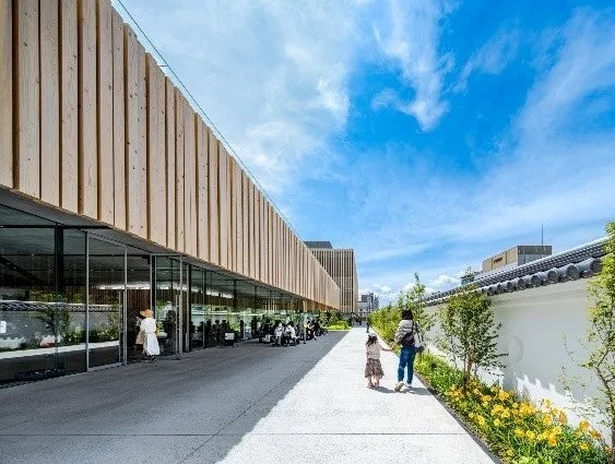 そして、この劇場の外観には高槻城をイメージした堀や塀が設けられ、外壁には歴史的な格子戸を模した木材が張り巡らされています。館内も、木材を多く使用していることにより、居心地の良い明るさを演出しています。こうしたデザインは、周囲の環境と見事に調和しています。