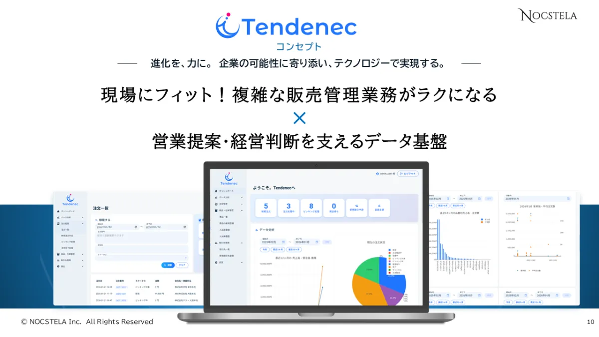 ノクステラ株式会社は、経営上の課題と現場の業務をITで結びつけ、企業価値の向上を目指すITソリューション提供企業です。販売管理システム「Tendenec」を中心に、業務改善やIT環境の整備、情報セキュリティの運用を支援し、企業の成長をサポートします。