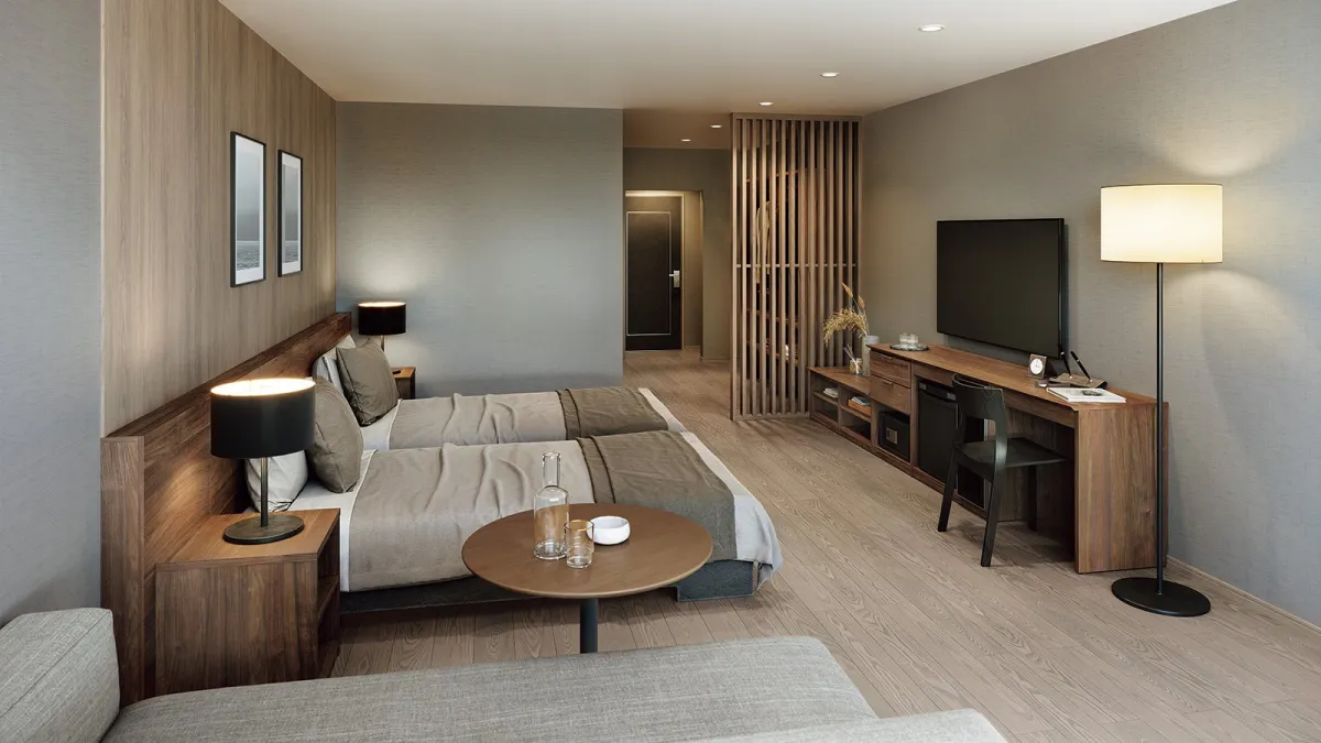 近年、持続可能な社会の実現を目指す国の取り組みや、木材利用促進法の改正により、公共建築物はもちろん、民間施設においても木材の使用が広がっています。内装の木質化は、単なるデザイン面だけでなく、心地よさや落ち着き感、環境への配慮という点でも重要視されています。特にホテルの客室は、不特定多数の利用者がいるため、高い耐久性と防音性能が求められるのです。