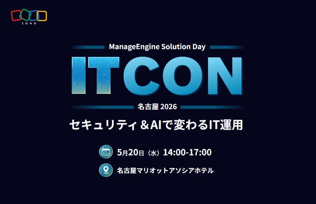 ゾーホージャパン株式会社が主催する「ITCON 名古屋 2026」が、2026年5月20日(水)に名古屋マリオットアソシアホテルで初めて開催されることが決定しました。このセミナーは、特に製造業が多く集まる東海地方において、サプライチェーンを標的としたサイバー攻撃が増加する中、経済産業省が推進している「セキュリティ対策評価制度」に対応する方法を探る大きなチャンスとなるでしょう。