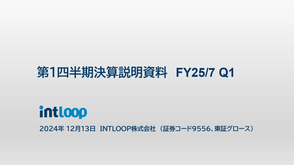 INTLOOP株式会社、2025年7月期第1四半期の決算を発表