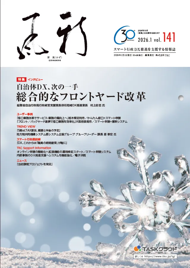 株式会社TKCが、地方公共団体向けの情報誌『新風(かぜ)』2026年1月号を発行しました。この号では、デジタル・トランスフォーメーション(DX)の流れの中で、自治体に求められる変革の次のステップとして「総合的なフロントヤード改革」に焦点を当てています。