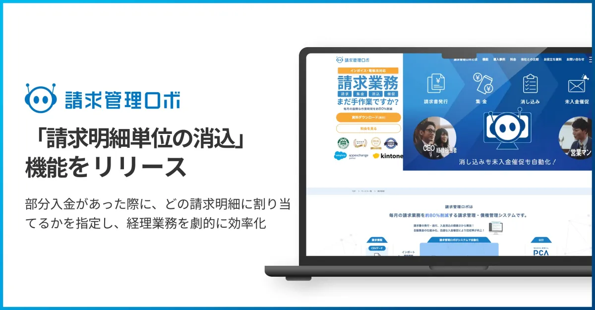 この機能は特に不動産会社、広告代理店、リース・レンタル業界、SaaS企業など、多様な請求明細を扱う企業に適しています。部分入金が多発するこれらの業種では、明細ごとの入金管理が特に重要です。