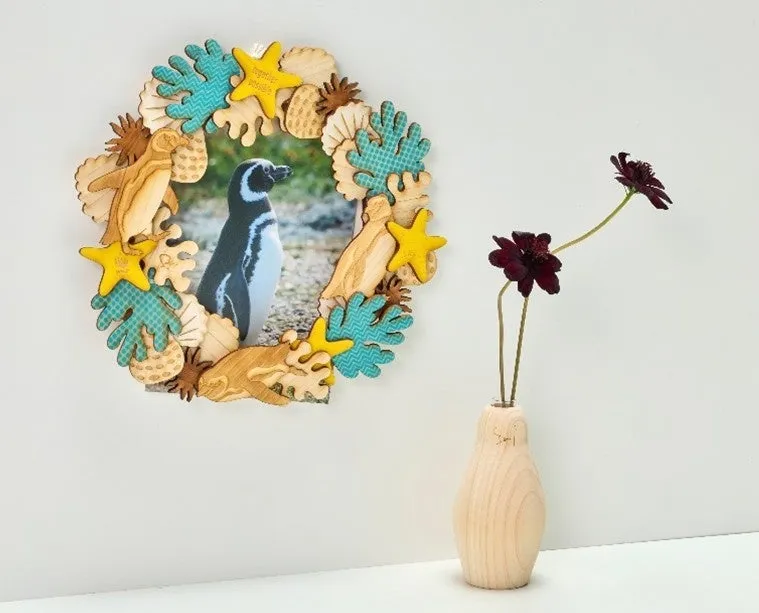 このリースキットは、国産のヒノキ、ケヤキ、スギでできており、自然の香りが楽しめるパーツを自分で組み立てることができます。可愛いマゼランペンギンのモチーフが加わり、出来上がったリースは写真やポストカードを飾るフォトフレームとしても活用できます。ページでは、販売価格は8,000円(税込)で、約30分で組み立てることができるため、手作り感を楽しむことができます。