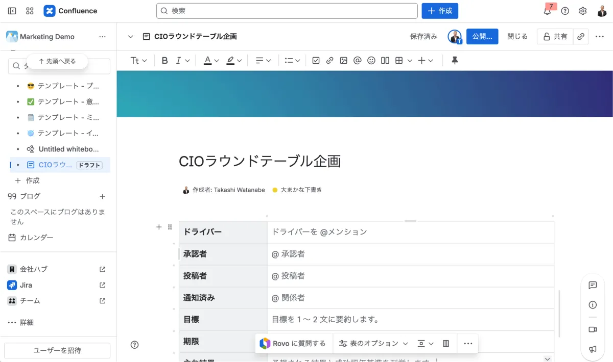 Confluenceは、ドキュメント作成、議事録作成、プロジェクト計画、ナレッジベースの構築など多様な機能を提供するチーム向けプラットフォームです。その特筆すべき機能としては、以下のものが挙げられます。