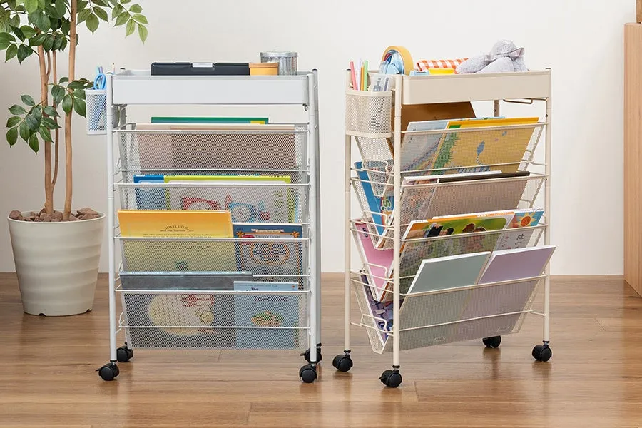 両サイドから出し入れできるデザインは、利便性が高く、収納物も一目で確認できます。バスケットにはメッシュ素材が使用されているため、通気性も良く、ほこりが溜まりにくいのも大きな特徴です。