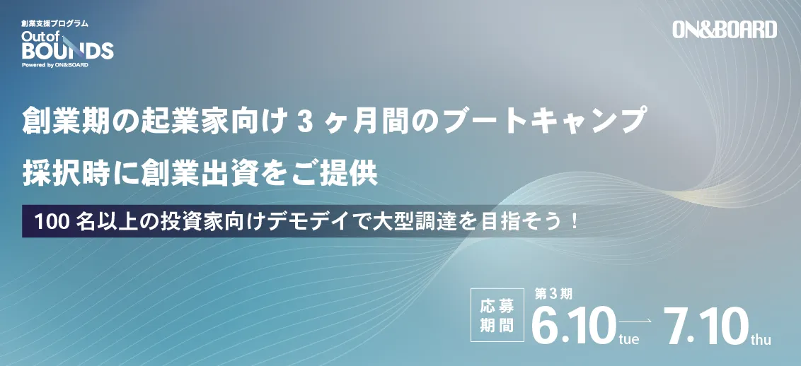 ON&BOARD株式会社が運営するこのプログラムは、革新的なビジネステーマを発掘し、それを実現させるためのサポートを行います。今回の第3期プログラムでは、選ばれたスタートアップに対してON & BOARDからの出資が行われることが特徴です。これまでの「Out of BOUNDS」では、多くのスタートアップが資金調達に成功し、国内外の投資家からの注目を集めてきました。