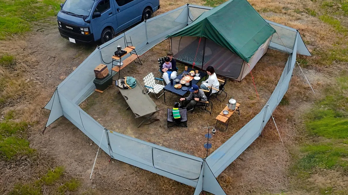 設営も、サクッと10分程度で完了します。従来のテントやタープに追加で必要なだけの設営が求められるものの、そのスピード感を重視し、誰でも楽に設営できるよう設計されています。また、145cm程度の身長の人間なら、ワンダーウォールの100cmの高さをまたぐことができるため、使いやすさも抜群です。