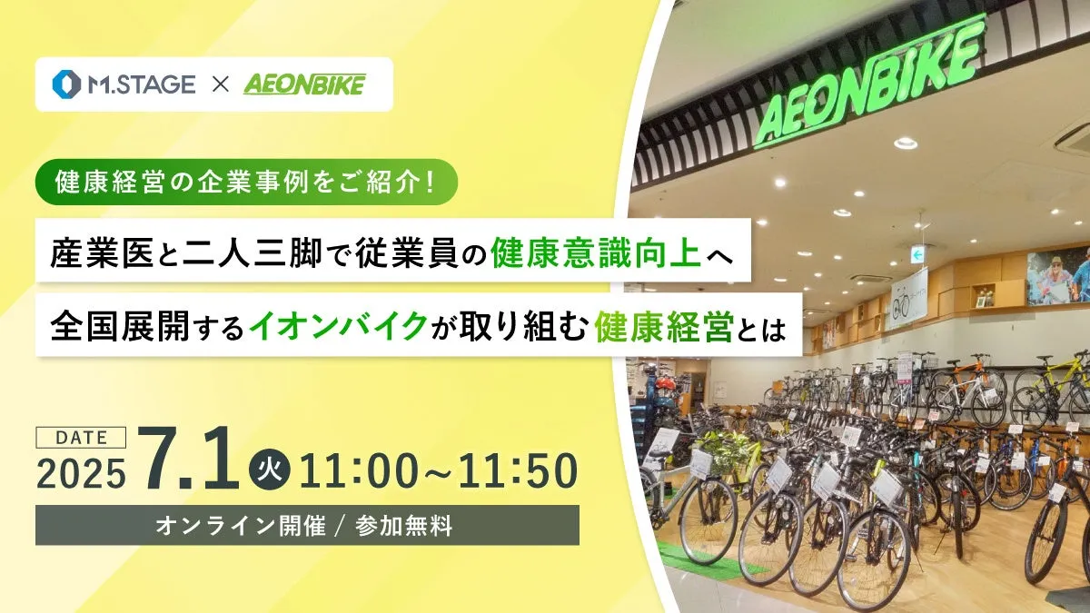 健康経営の重要性が増す中、企業が従業員の健康促進にどのように取り組んでいるのか、その実際を知れる機会が迫っています。2025年7月1日(火)11:00からオンラインで開催されるウェビナーでは、全国に約260店舗を展開するイオンバイク株式会社の健康経営における取り組みを詳しく紹介します。このイベントでは、産業医との連携を基にした健康意識の向上や、特にメンタルヘルス不調への対策に焦点をあてています。