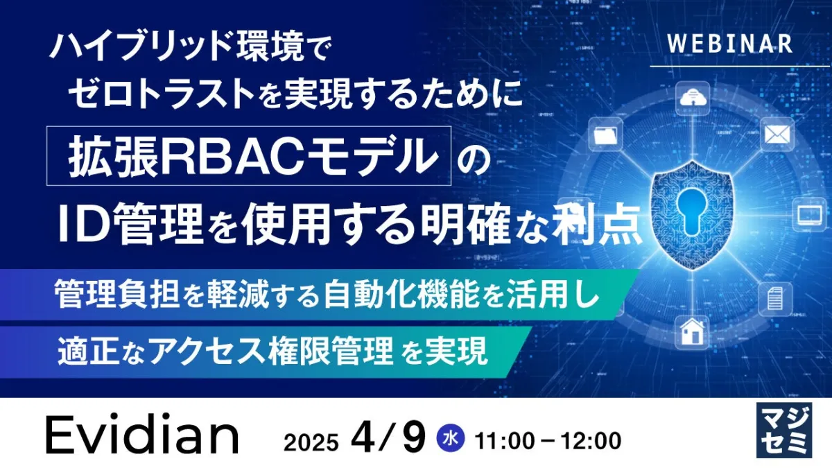 本ウェビナーでは、Evidian IGAの拡張RBACモデルの有用性や、自動化による運用改善のポイントを詳しく紹介します。参加者は、最新のID管理手法についての知識を深め、実際の業務に如何に活用できるかを学ぶことができるでしょう。ウェビナーは、ハイブリッド環境でゼロトラストを実現するための具体的な方策を提案し、参加者の実践的な理解を助ける内容となっています。