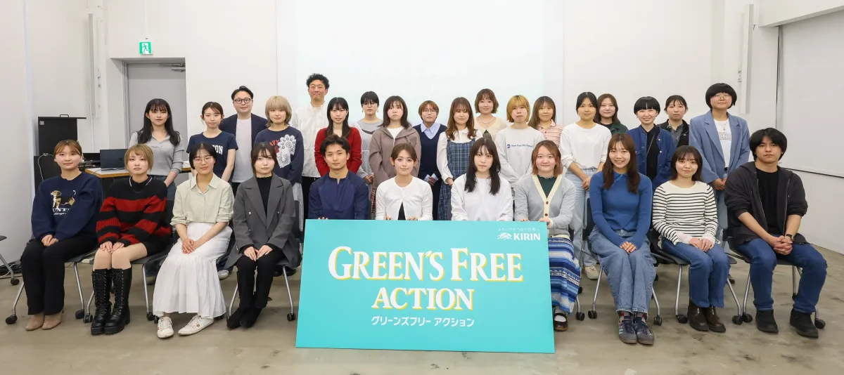 キリンビールは、そのブランドアクションの一環として「人と人、人と社会をつなぐ」酒のポジティブな価値を広めるための活動を展開しています。今春に始まるノンアルコールドリンク「キリン グリーンズフリー」に紐づいたこの特別講義は、飲酒文化の変化を受けて多様性を受け入れる新たなアプローチを学生に提供するものです。
