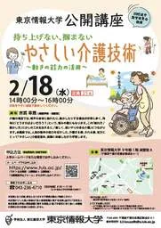 東京情報大学では、地域の方々に向けた公開講座の開催を発表しました。この講座のタイトルは「持ち上げない、掴まない、やさしい介護技術 ~動きの能力の活用~」です。介護に関わる方々や興味のある方に最適な内容となっています。2026年2月18日(水)14:00から16:00まで、大学の9号館1階 実習室Aにて開催されます。