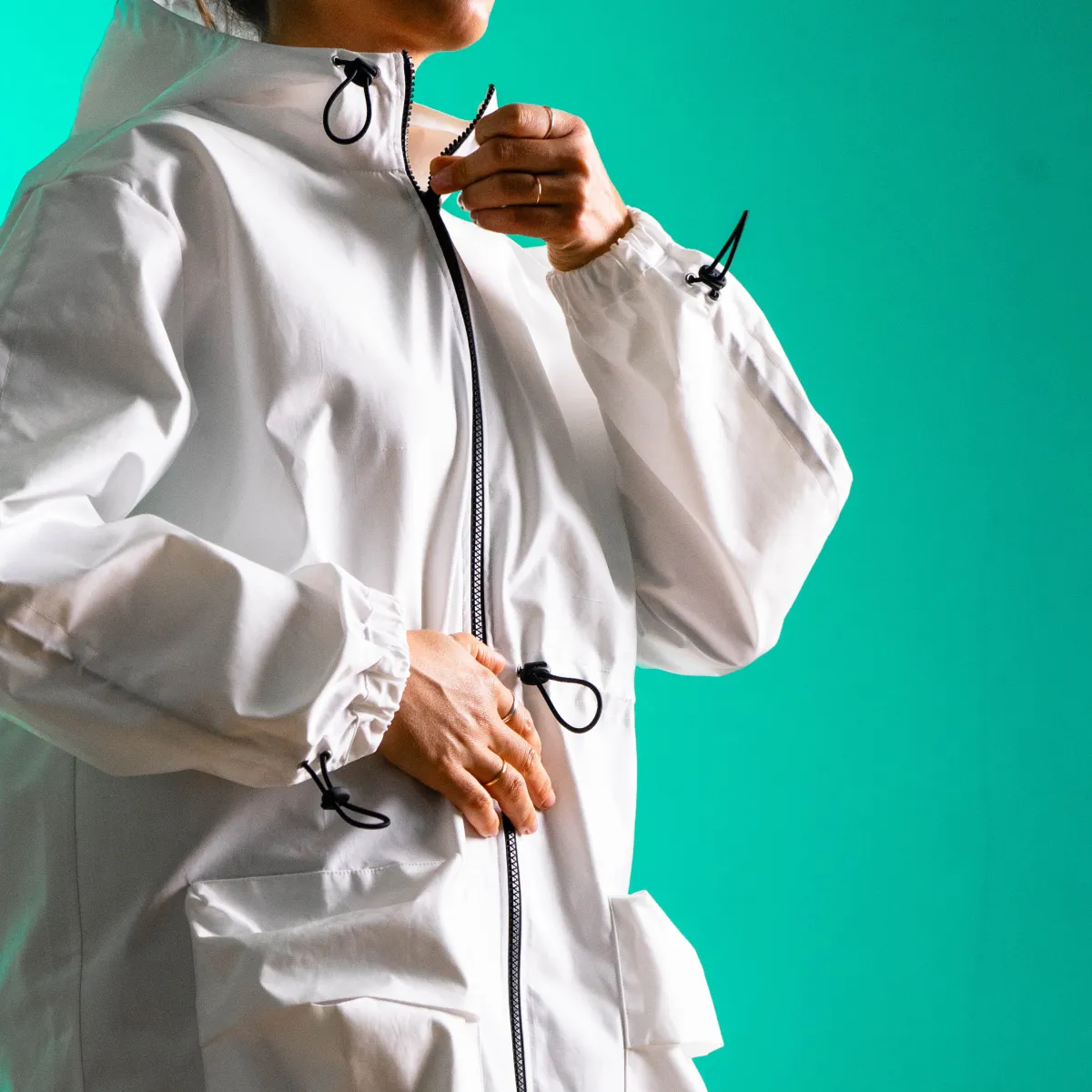 AMPHITEXは、従来のテキスタイルで使われていたPFAS(有機フッ素化合物)を使用せずに、高い透湿性と防水性能を兼ね備えています。従来技術に依存せず、まったく新しい素材設計によって実現されたこのテキスタイルは、アパレルに求められる風合いや耐久性を保ちつつ、環境への負荷を軽減しています。