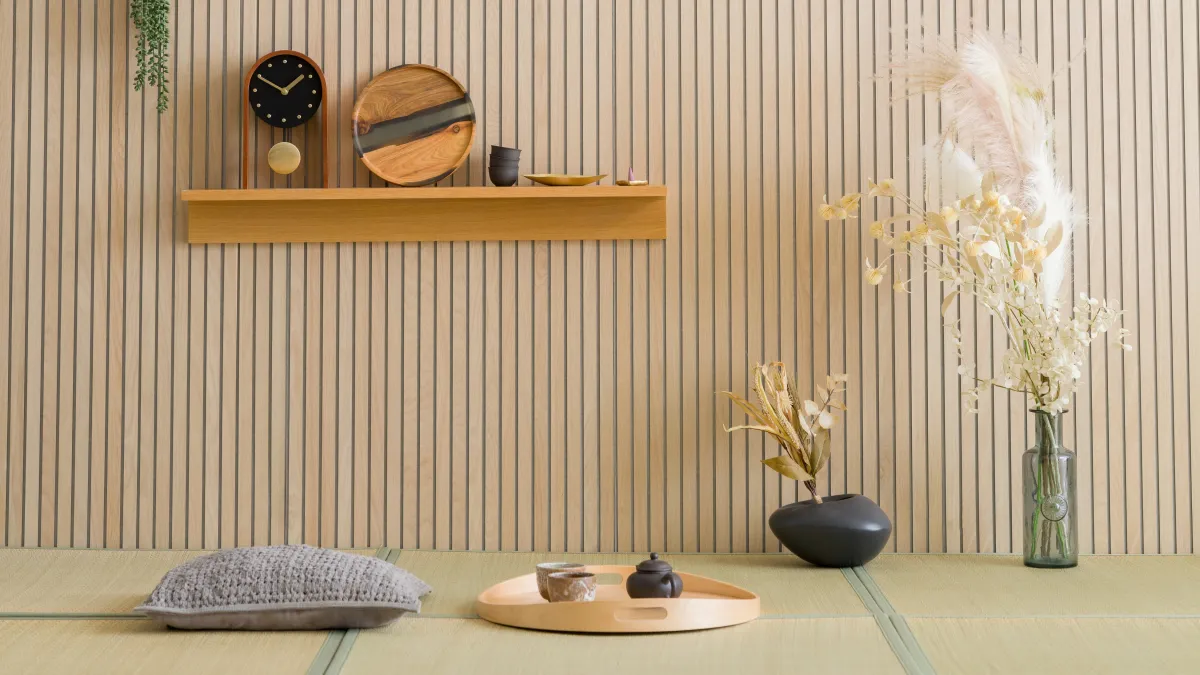 「RIB:BO」は、見た目の美しさと高い吸音性能を兼ね備えた壁面パネルです。従来の吸音材としての機能性を超えて、インテリアとしての存在感を発揮する点が、多くのユーザーから支持を得ている理由です。特に、スリットの表面には薄くスライスした天然木が使用されていて、高級感を演出しています。また、ホワイトオークやウォールナットなど、素材のバリエーションも豊富で、それぞれの部屋のスタイルに合わせて選ぶことができます。