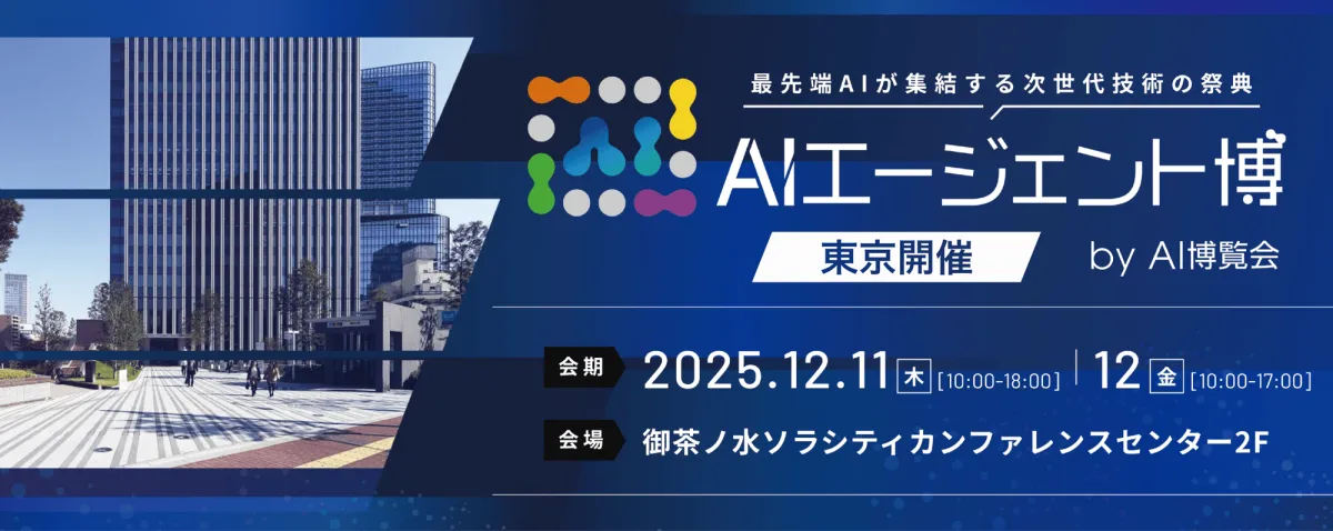 2025年12月11日から12日まで、東京で「AIエージェント博 by AI博覧会」が開催されます。このイベントでは、最先端のAIエージェント技術と生成AIソリューションが一堂に集結します。主催するのは、国内最大級のAIポータルメディア「AIsmiley」を運営する株式会社アイスマイリーです。