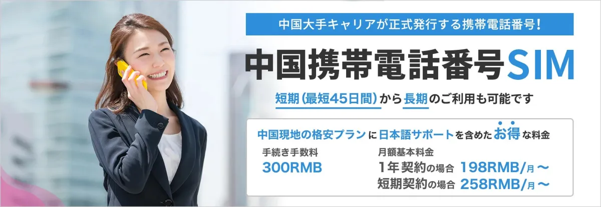 ジョイテルの提供する中国携帯電話番号SIMは、中国電信の携帯電話番号SIMを日本国内で簡単に申し込むことができるサービスです。料金は日本円で請求されるため、為替や複雑な手続きの心配も無用です。