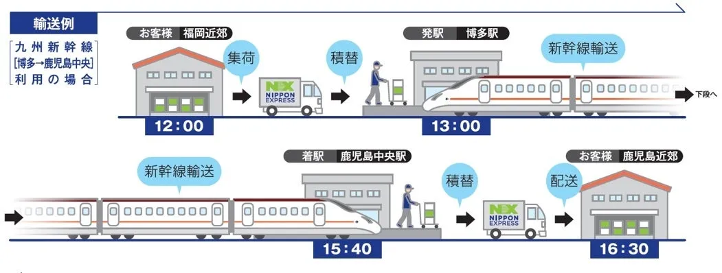 JR九州が運営する「はやっ!便」を取り入れたこのサービスは、博多、熊本、鹿児島の間での新幹線輸送を可能にし、特定の駅間での配送も調整によって実現できます。