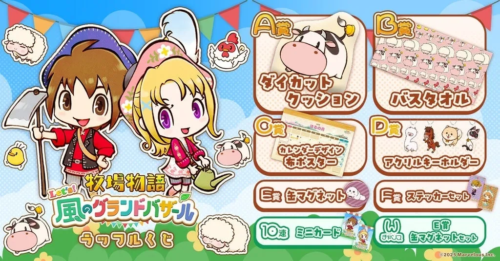 オンラインくじプラットフォーム「RAFFLE」を運営するフォッグ株式会社が、新しいラッフルくじを発表しました。これまでの『牧場物語』シリーズから一新された『Let's!風のグランドバザール』の世界観をテーマにした景品が揃っており、今回のくじはファンにとって見逃せないイベントです。