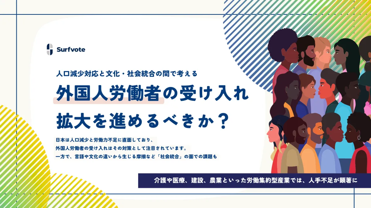 少子高齢化が進む中で、外国人労働者の受け入れが不可欠であると同時に、効果的な制度設計や地域の共生社会の実現にも取り組む必要があります。Surfvoteでの意見募集は、まさにこのような課題を多角的に考えるための一助となるでしょう。