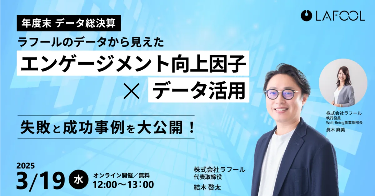 企業の成長には従業員のエンゲージメントが不可欠です。株式会社ラフールは、エンゲージメント向上に向けたデータ活用法や成功事例を紹介するオンラインセミナーを2025年3月19日(水)に開催します。このセミナーでは、ラフールが収集した重要なデータを基に、企業が実際に直面する課題の解決策を掘り下げます。
