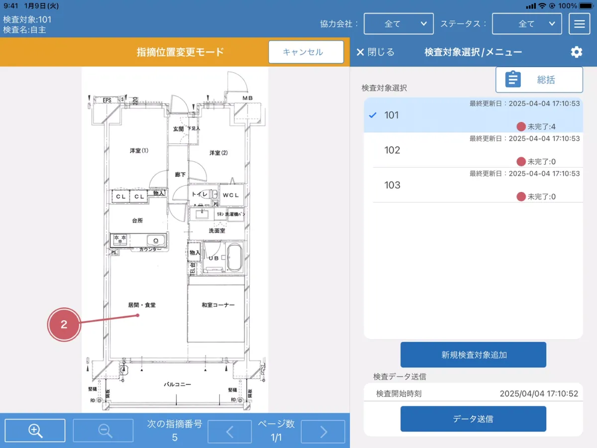 図面上での指摘事項の登録を誤った場合でも、指摘番号を長押しすることで簡単に位置を変更できる「指摘位置変更モード」が新設されました。このモードでは、移動中の状態が明確に示されるため、ユーザーは直感的に操作できるようになっています。これにより、作業の効率性が向上します。