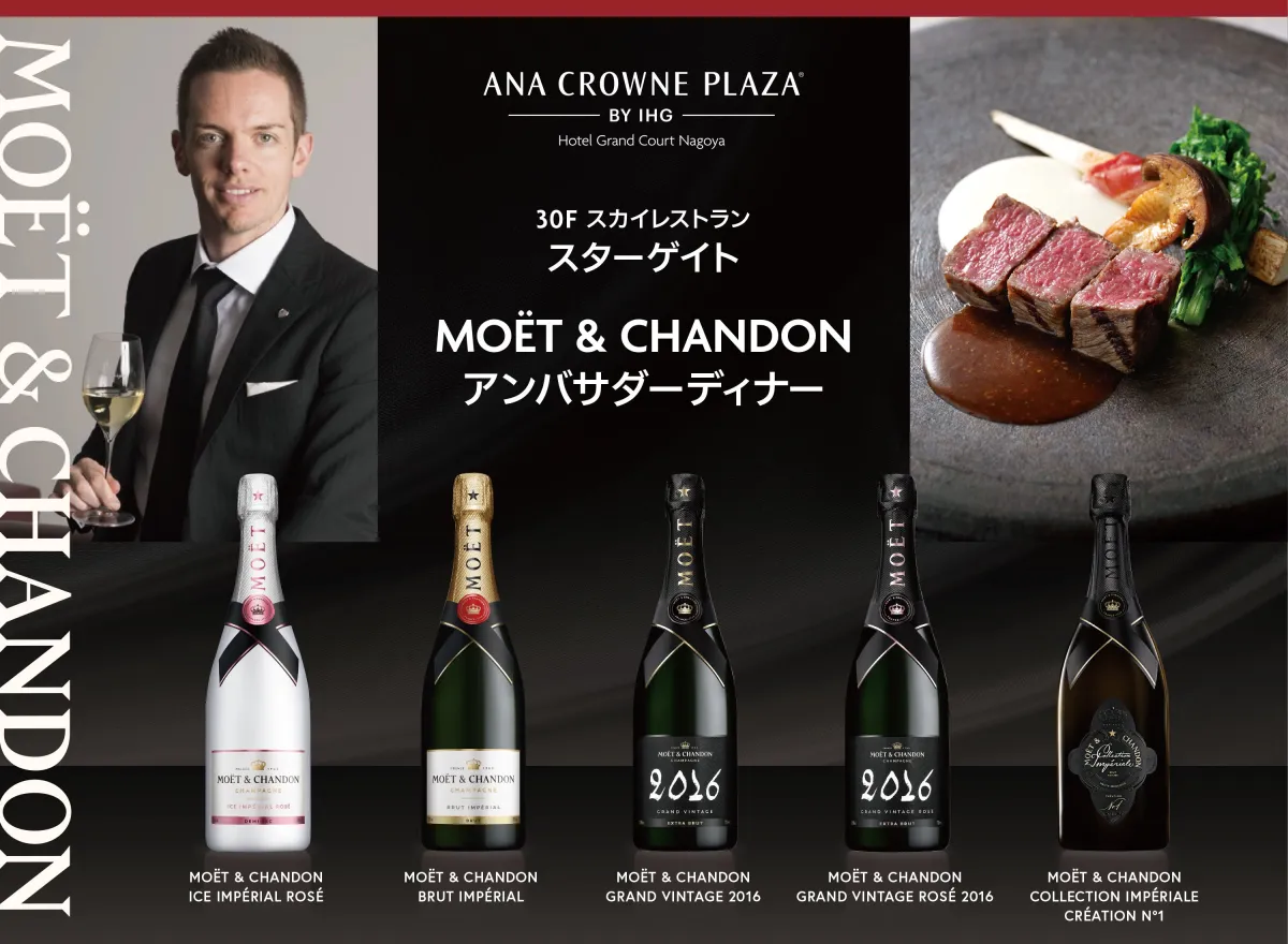 名古屋のANAクラウンプラザホテルグランコート名古屋では、2026年4月3日に特別なシャンパーニュディナーが開催されます。このイベントでは、モエ・エ・シャンドンのブランドアンバサダー、ティモシー・ベック氏がもたらす高級シャンパーニュを、三重県の厳選食材を使用した料理と共に楽しむことができます。