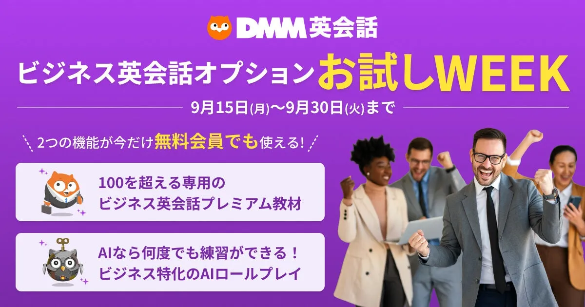 2025年9月15日から30日までの期間、合同会社DMM.comが運営するDMM英会話では、特別なキャンペーンを実施します。この「ビジネス英会話オプションお試しWEEK」では、追加料金3000円で利用できるビジネス英会話の機能を、無料で体験することができます。
