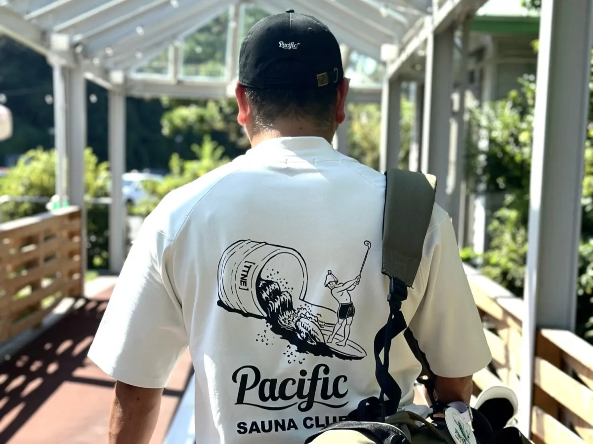 また、グラフィックデザインの面でも注目です。アーティストのFACE氏が手がけたデザインにより、〈Pacific GOLF CLUB〉のキャラクターが新たにアレンジされ、サウナハットを被った“波乗りゴルファー”が描かれています。このユニークなデザインが、他のアイテムとの明確な違いを生み出しているのです。