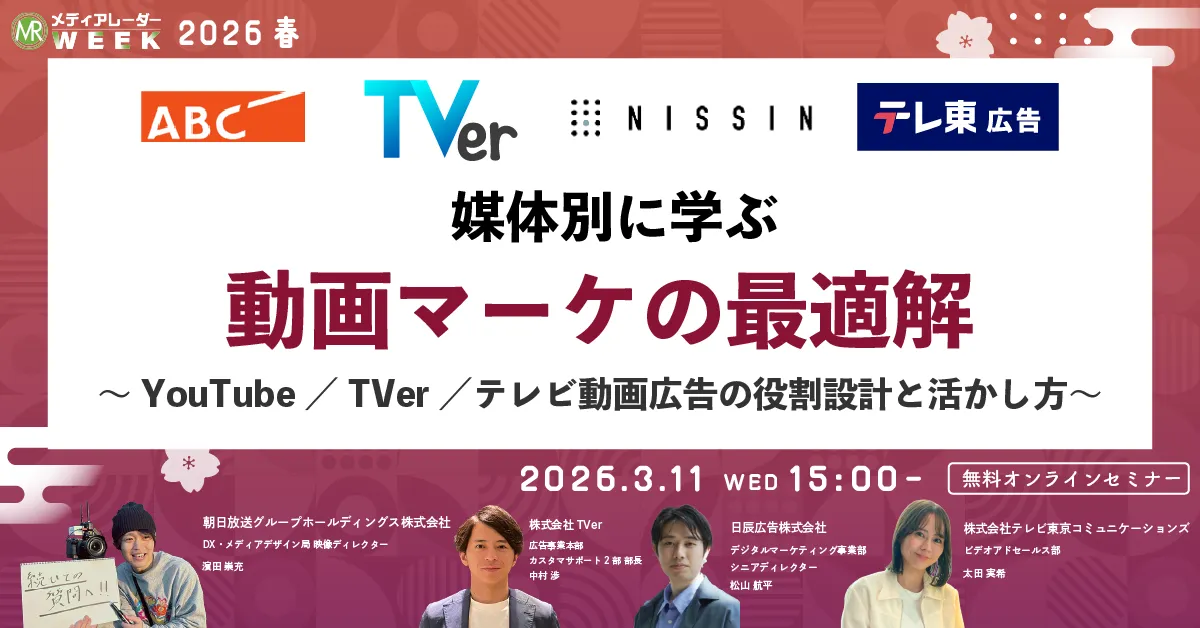 2026年3月11日、株式会社アイズが運営する広告業界プラットフォーム「メディアレーダー」が主催するマーケティングセミナーが開催されます。多くの企業が進む中、動画広告の市場は急成長を続けています。しかし、単に広告を配信するだけでは、認知度が向上するだけで実際の成果には結びつかないという課題が多くの企業で顕在化しています。このセミナーでは、そんな悩みを解決するためのヒントを得ることができます。