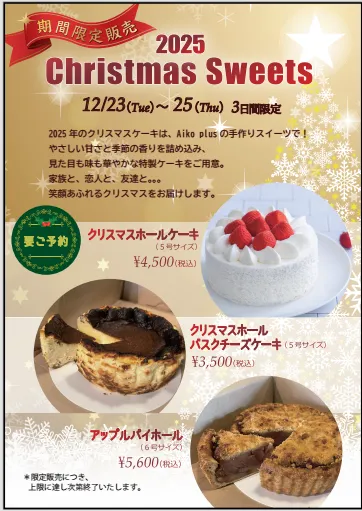 Aiko plus)からの予約にも対応。特別なひとときをAiko plusで過ごすことで、心に残る素敵なクリスマスと新年を迎えることができるでしょう。