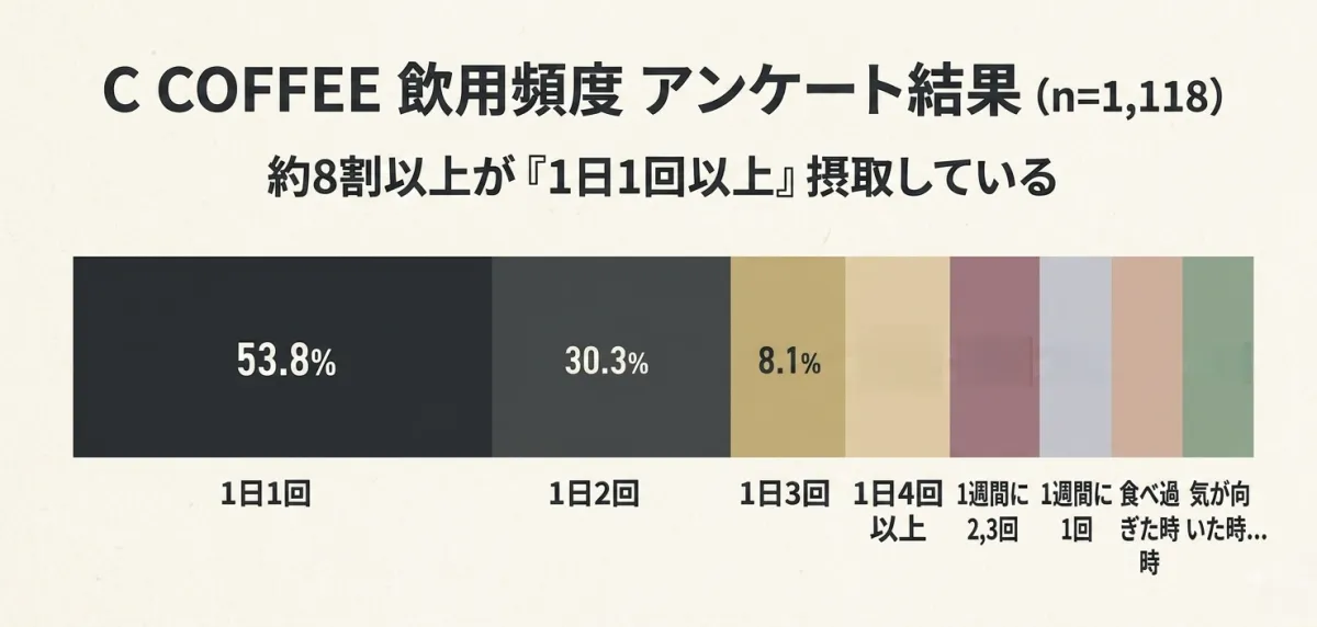 調査の結果、C COFFEEを1日1杯以上飲む人は91%を超えており、1日3杯以上飲むという会員も約10%に達しました。この習慣が、多くの人にとって「無理なダイエットをせず、太らないライフスタイル」を実現するための手助けとなっているようです。