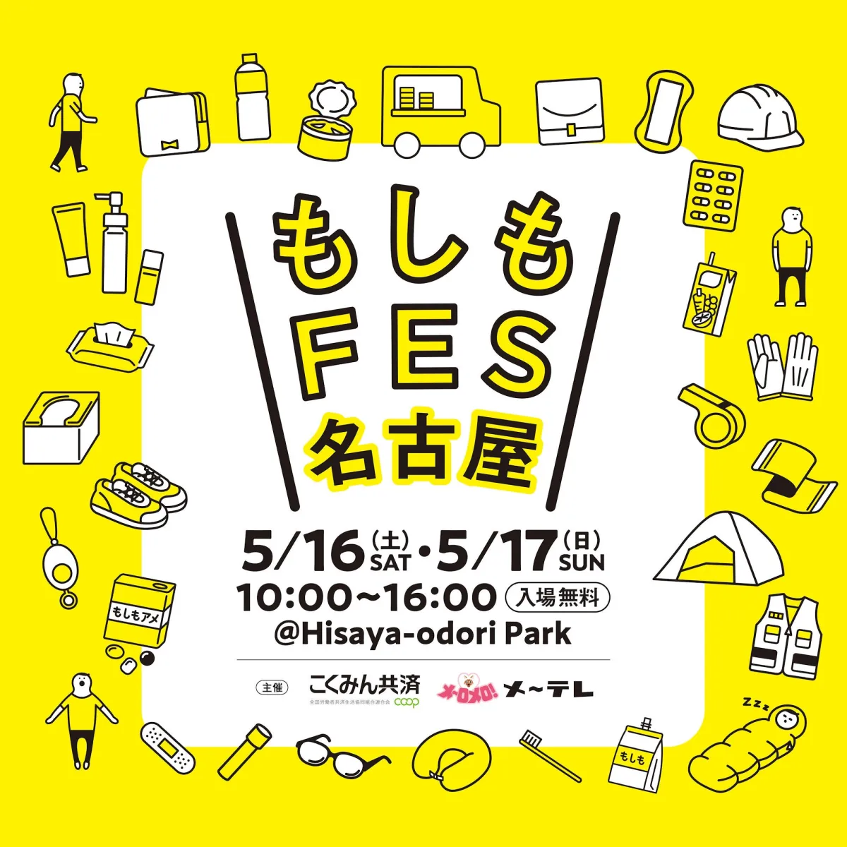 今年の「もしもFES名古屋2026」は、メ~テレ(名古屋テレビ放送)とこくみん共済 coop 〈全労済〉が共催し、愛知県や名古屋市の後援を受けて実施されます。参加者は、防災に関するさまざまなコンテンツに触れ、実際に体験しながら学ぶことができます。