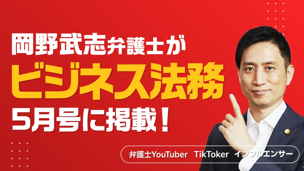 「ビジネス法務」5月号に掲載された岡野弁護士の記事は、全国の書店やオンラインストアで販売中です。この号を通じて、弁護士業界におけるSNS活用の新たな潮流を感じ取り、これからの法律サービスの在り方について多くの人が考えを巡らせるきっかけとなることでしょう。
