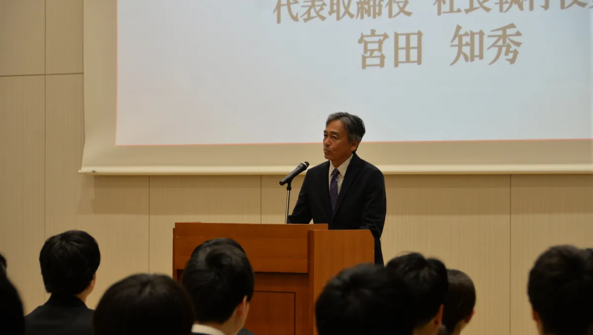 次に、宮田社長は新入社員に向けて「安全」の重要性を強調しました。彼は、従業員の安全を事業の最優先課題とし、日々の業務の中で常にリスクを評価し、行動を見直す重要性について話しました。従業員全員が自身の行動に対する責任を持ち、何が危険であるかを常に考える習慣を養うことが必要です。
