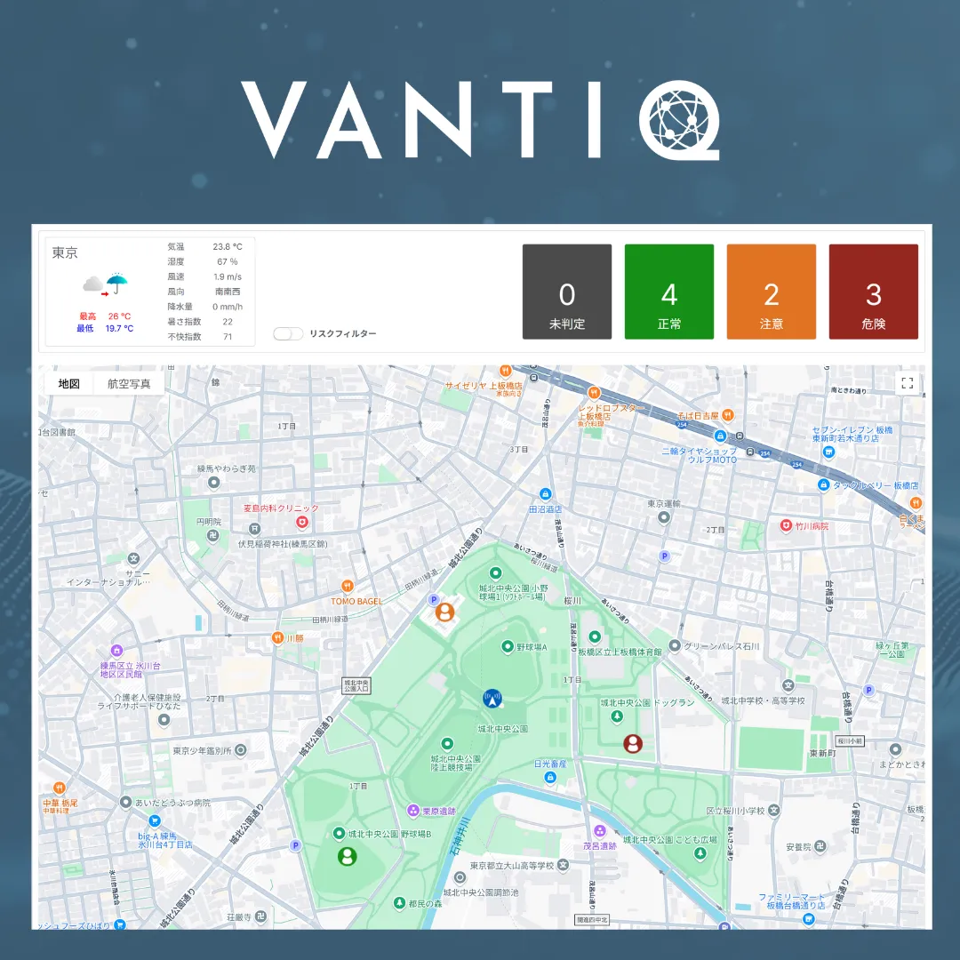 Vantiq株式会社は、ウェアラブルデバイスを活用した新しい「リアルタイム健康管理システム」を開発しました。このシステムは、スマートウォッチなどのデバイスから取得した脈拍、呼吸、血圧、体温などのバイタルデータと、リアルタイムの気象および地理情報を統合することによって、個人およびその周囲の健康状態の予測と対策を可能にします。